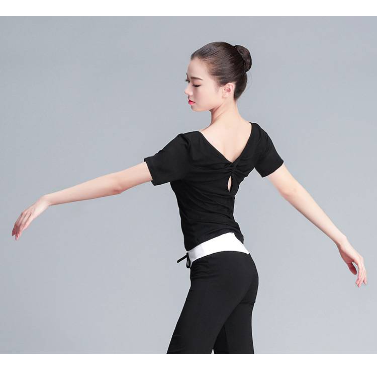 Женский топ для йоги, футболка с коротким рукавом, Спортивная рубашка для фитнеса, футболка для девочек, черная Одежда для танцев, спортивный топ, гимнастическая одежда