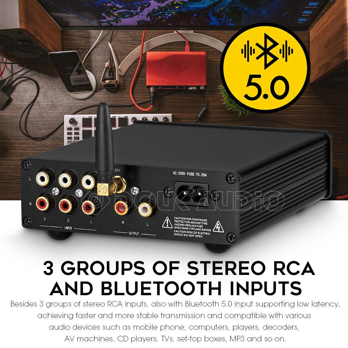 Помимо 3 групп стереонаушников RCA, также с Bluetooth 5,0 входом, поддерживающим низкую задержку, достигая более быстрой и стабильной передачи и совместимой с различными аудиоустройствами, такими как мобильный телефон, компьютеры, плееры, декодеры, AV машины, cd-плееры, телевизоры, телеприставки, MP3 и так далее.