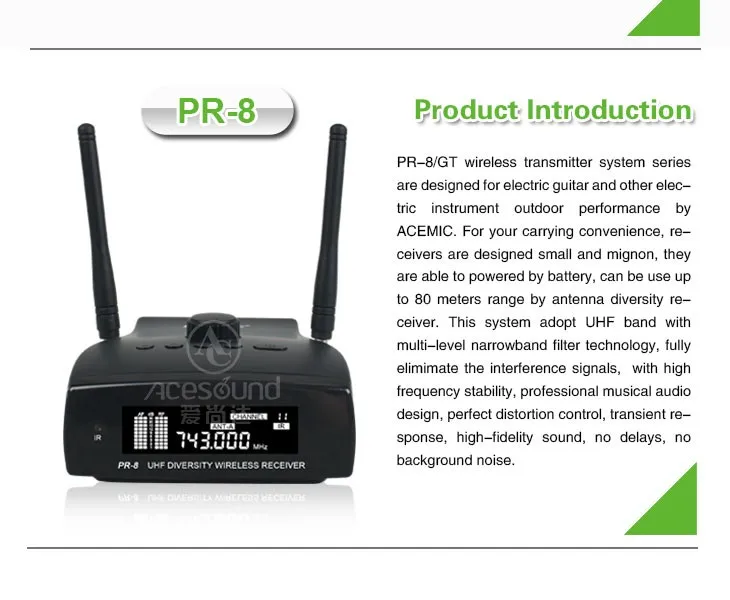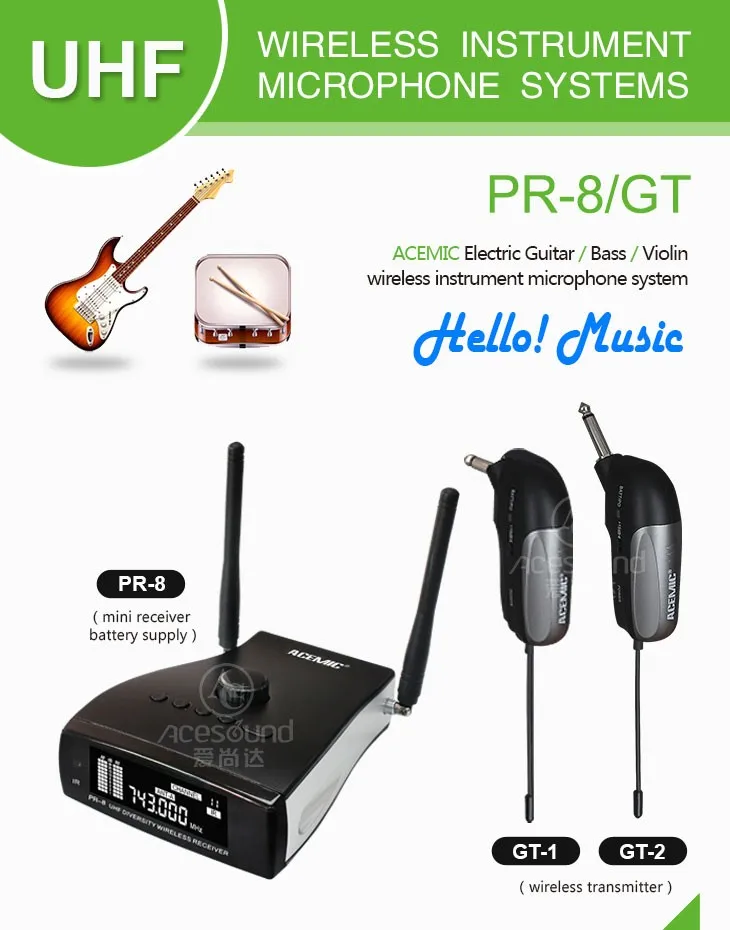НовинкаАцемическийPR-8/GT-2 PR-8/GT-1Сценическое разнообразие Беспроводная электрическая гитара бас пианино барабаны Виолончель кларнет аккордеон микрофон система