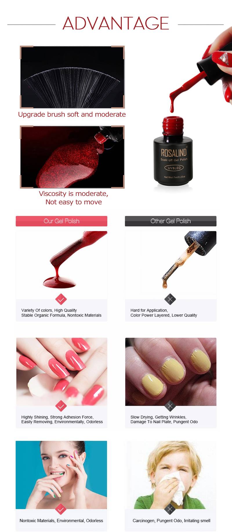 ROSALIND 7ML Nail Gel Polish Varnishes Hybrid Nail Art Semi Permanent Nail Polish Soak Off Top Coat Gel Lacquer
