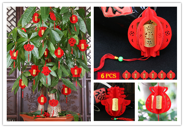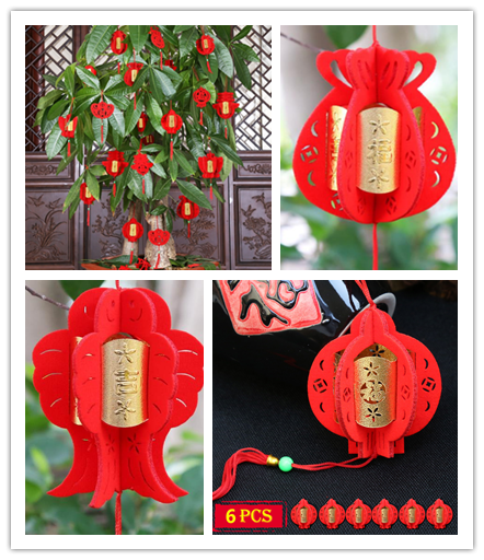 Китайские Новогодние украшения 3D флокированные маленькие красные фонарики Весенний фестиваль висячие украшения Горшечное растение украшение