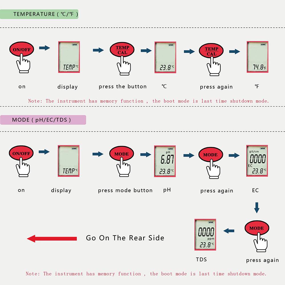 Диапазон измерения: pH: 0,00-14,00 pH; TDS: 0-19990ppm