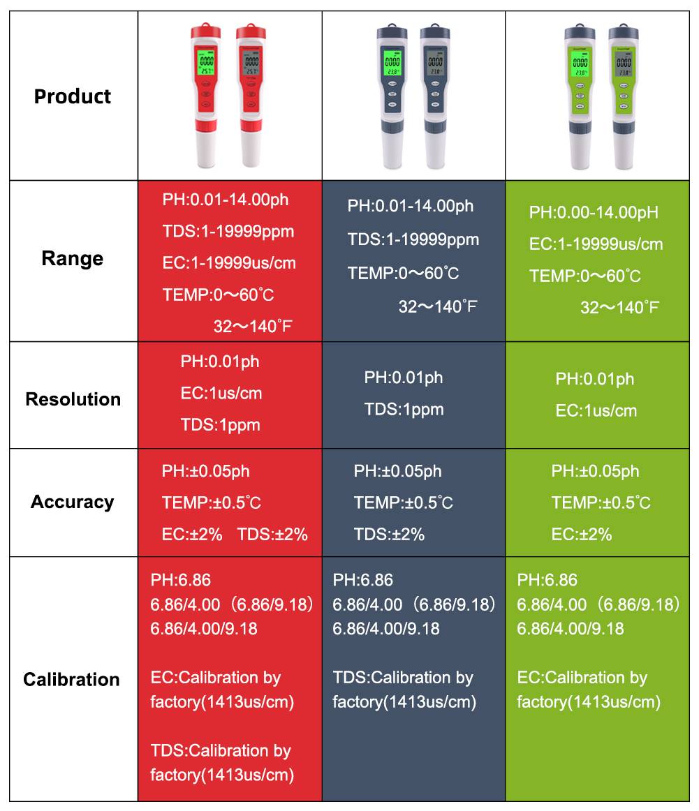 ► Точность: pH: +/-0,01 pH; TDS: +/-2%; Температура: 0,5 ℃