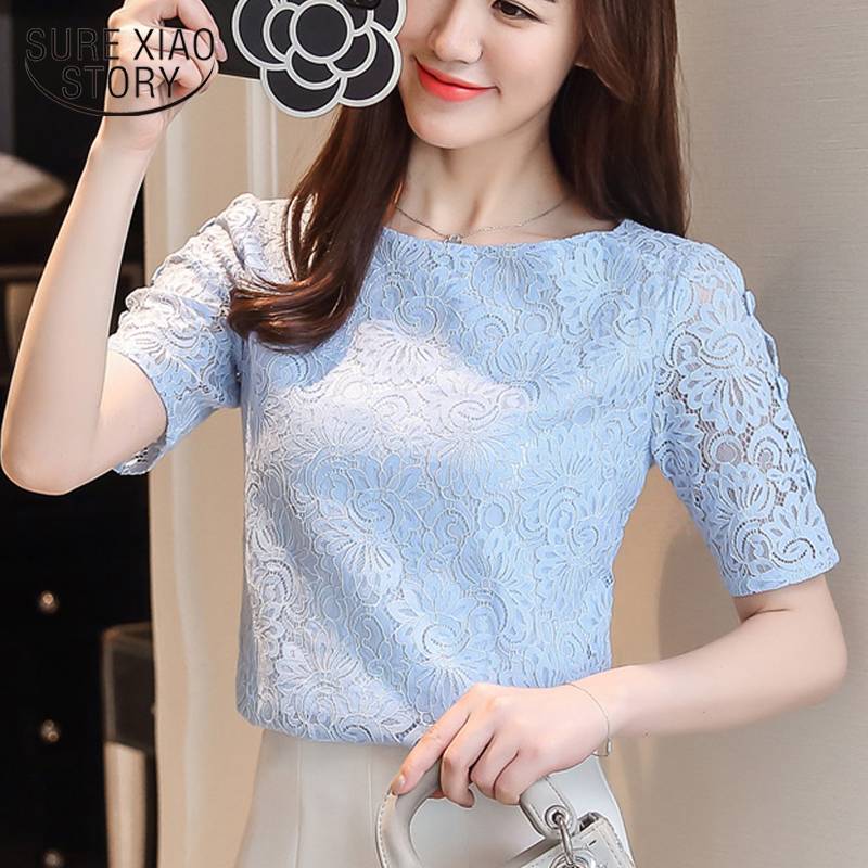 Модные женские кружевные блузки летние рубашки с коротким рукавом топы Ажурные