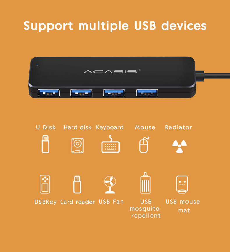 Acasis USB 2,0 3,0 компактная портативная Высокоскоростная поддержка Multipe USB Decice концентратор для ПК ноутбука 4 порта адаптер расширения