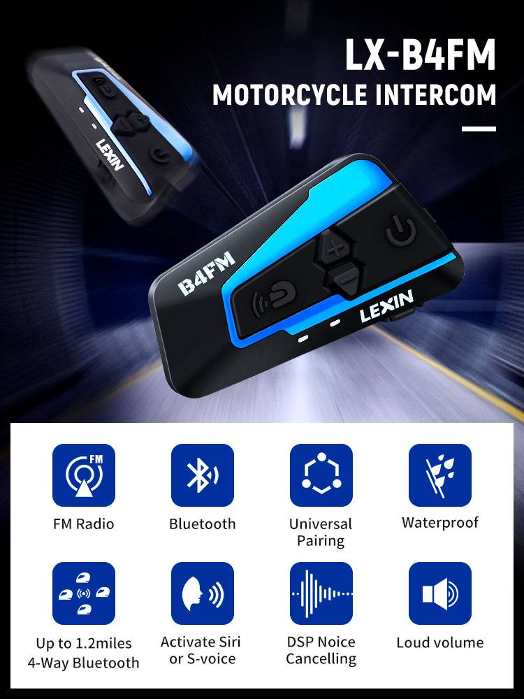 LEXIN, LX-B4FM домофон мотоцикл Bluetooth гарнитура для шлема, для 1-4 всадников С Подавлением Шума и громкий звук, мульти-функции, такие как FM радио, универсальная функция сопряжения и оставшегося заряда аккумулятора.