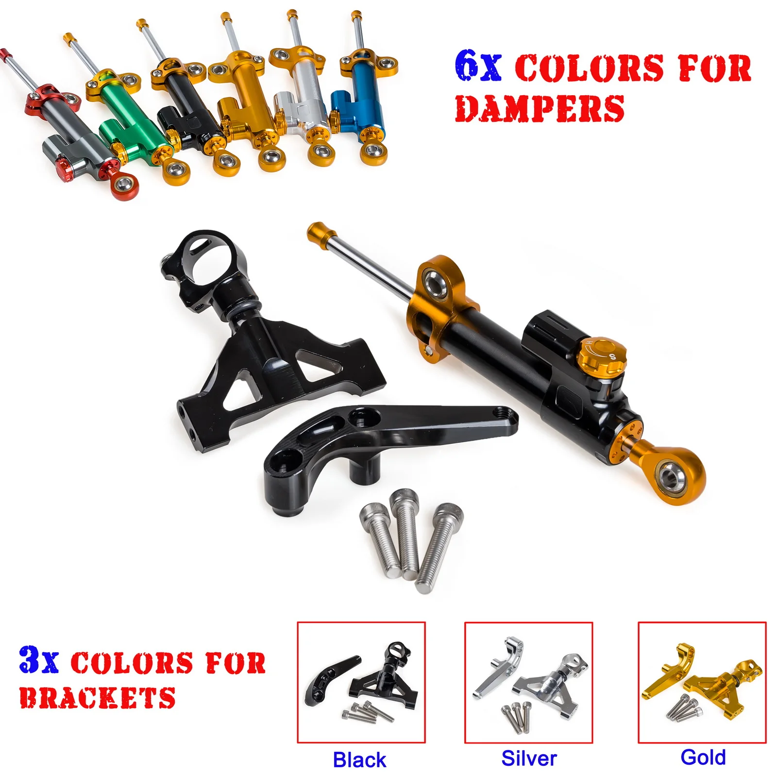 Aftermarket Мотоцикл Регулируемый рулевой демпфер и Кронштейн монтажный комплект. Опытные гонщики знают ценность качественного демпфера рулевого управления. Амортизаторы и вибрации резервуара перехлестываются демпфером. В результате у вас есть велосипед, который следит за тем, как вы привыкли, и реагирует на то, как вы надеетесь в неожиданных обстоятельствах. Характеристики и особенности: -- Состояние на 100% абсолютно новый -- Кол-во: 1 комплект (демпфер руля и монтажный кронштейн) -- Материал: алюминий 6063-T6 -Цвет: как на картинке -- Увеличьте углы и высокоскоростную стабильность -Сделать вас более безопасным вождения -- Демпфер обладает активной/чувствительной к скорости системой демпфирования -Демпфирование можно регулировать в 22 положениях -- CNC-обработанный из легкого авиационного алюминия -- Анодированная отделка поверхности -- Комплект включает демпфер и монтажный кронштейн -- Никаких изменений не требуется -- Легко установить, Нет инструкции Примечание по установке: 1. После установки поверните головку вправо и влево, чтобы проверить, достаточно ли места для деятельности демпфера рулевого управления или нет. 2. Проверьте, достигнет ли демпфер руля и его комплект мотоцикла или масляного бака. Если они это делают или в помещении не хватает, перемещайте демпфер руля горизонтально в нужное место. Приспособление: Для Kawasaki Ninja ZX-14 ZZR1400 2006-2019