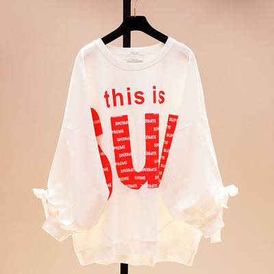 Женская хлопчатобумажная рубашка в Корейском стиле, Повседневная Свободная трикотажная рубашка с длинными рукавами, буквенным принтом и круглым вырезом, лето 2019