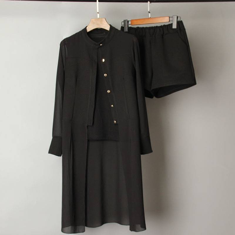 Весенне-летний женский комплект из двух предметов, повседневные топы + шорты, большой размер, однотонный топ, Женский офисный костюм, женский комплект с длинными рукавами