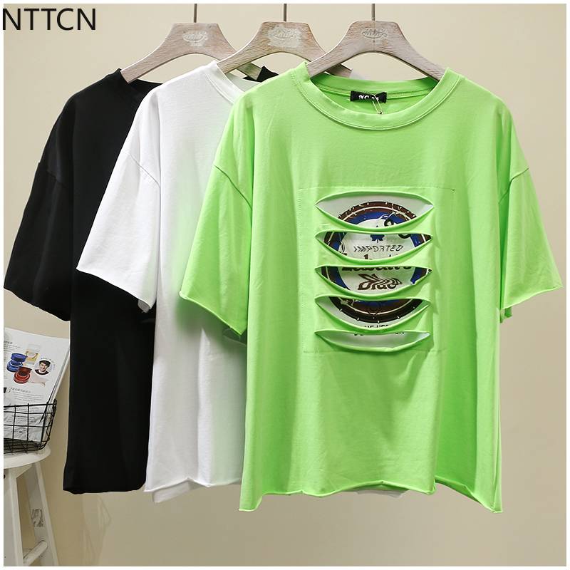 Женская футболка с дырками, модная футболка с коротким рукавом для отдыха, лето 2019