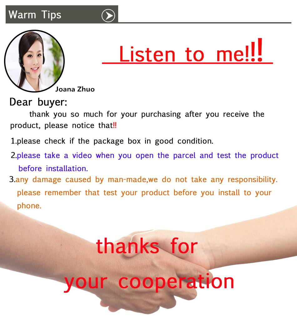 | Преимущества: | 1. Десять лет золотого поставщика в Китае. Наш клиент распространяется по всему миру. Высокое качество и лучшая репутация в этой отрасли. 2. Широкий ассортимент запчастей для мобильных телефонов, любая вещь, которая вам нужна, мы можем предоставить вам все, что мы получили или нашли для вас. Поможет вам сэкономить ваши деньги и время. 3. Профессиональная команда контроля качества для контроля качества деталей, чтобы убедиться, что наши продукты всегда наивысшего качества. Ведите бизнес с нами, чтобы ваши деньги купили правильные товары. 4. Лучшие продажи и группа продуктов, 24 часа в сутки убедитесь, что вы можете найти нас, когда вам нужно. Сэкономьте время для отдыха и отдыха с семьей. 5. Условия оплаты с диверсификацией. Мы принимаем T/T, western union, moneygram paypal и так далее. 6. Все наши продукты получаютОдин годГарантия. 7. Мы можем отправить вам товары DHL/EMS и т. д. 8. Мы организуем промо-акции часто. Добро пожаловать к нам. |