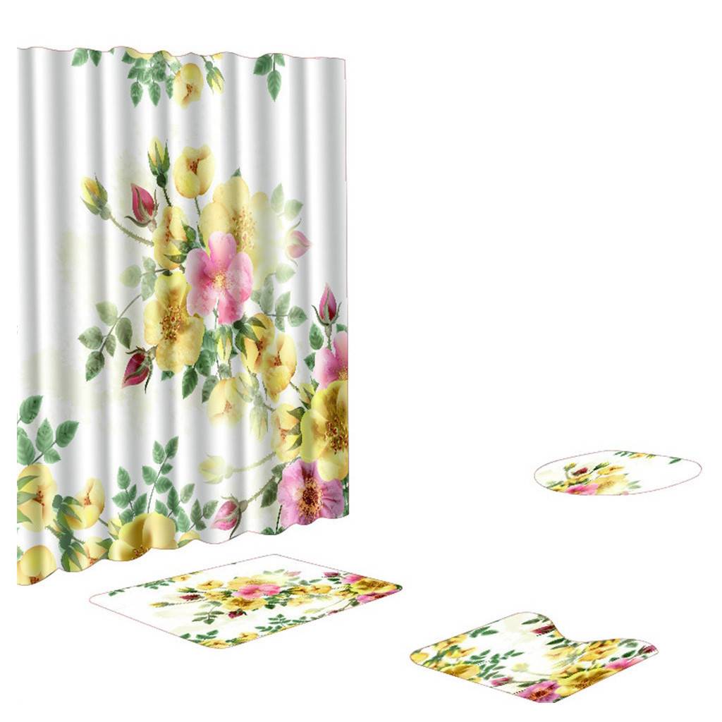 4 шт. нескользящий Набор ковриков из полиэстера для туалета и ванной комнаты, занавеска для душа