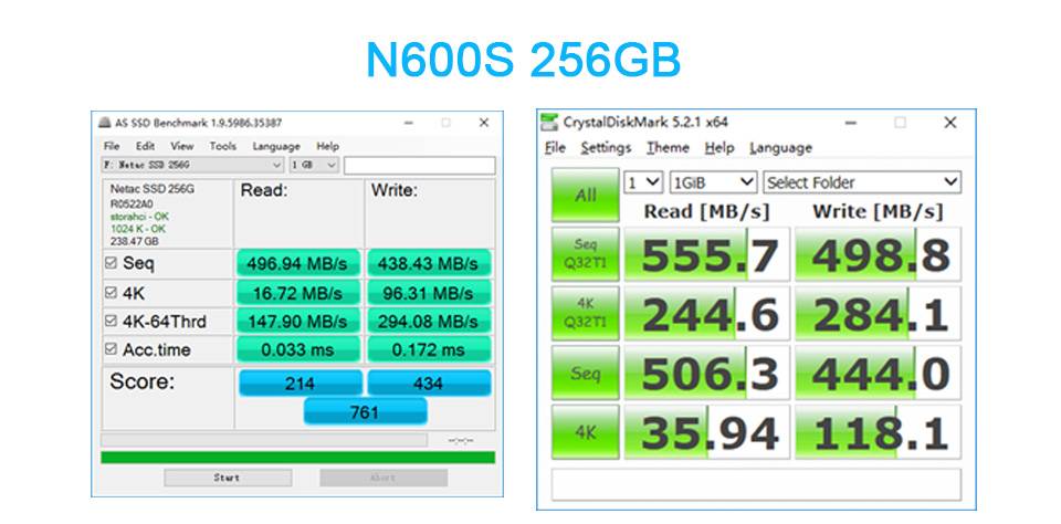 Модель: N600S Поддержка DDR: NA Характеристики продукта: Поддержка TRIM/SMART/износ-выравнивание/SLC Cache Испытательная Платформа: Процессор: Intel i7-5820K; (G-Skill) DDR4 2800 4GBx2 Материнская плата: ASUS X99-A/USB3.1 Жесткий диск: SSD Netac ОС: Windows 10 64 бит; Файловая система: NTFS