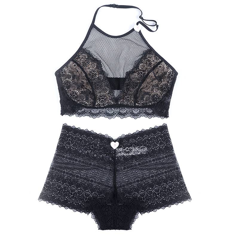 Женский бюстгальтер в богемном стиле с лямкой на шее, ультра тонкий кружевной комплект нижнего белья черного и белого цвета в европейском стиле, прозрачные бюстгальтеры и трусики