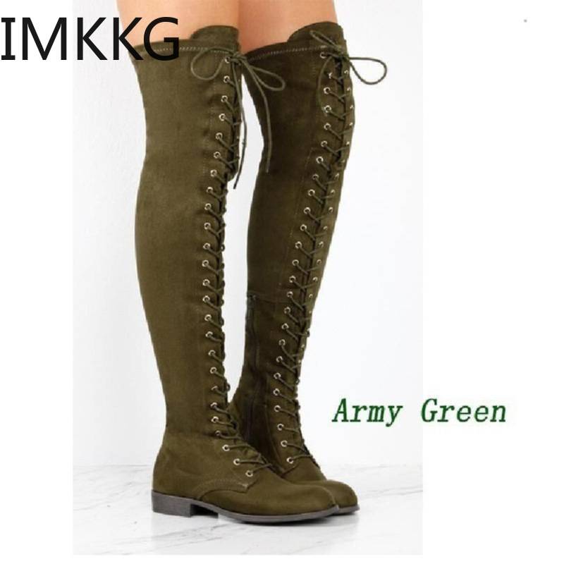 Ботфорты женские на шнуровке, пикантные сапоги в римском стиле, высокие зимние сапоги на низком каблуке, Размеры 35-43