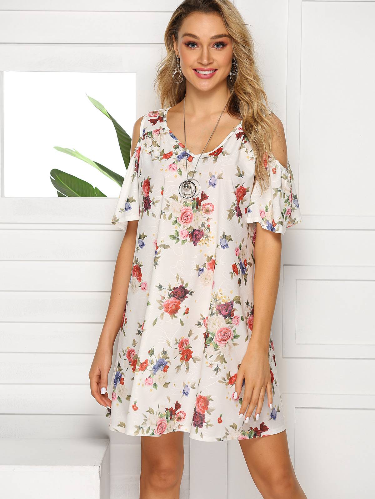 Это красивое мини-платье с милым цветочным принтом. Невероятно удобные, свободные, но женственные, подходят. V-образный вырез немного низок и достаточно широк, чтобы показать вашу очаровательную ключицу. Вырезы на рукавах прекрасно раскрывают плечи и сохраняют прохладу летом.