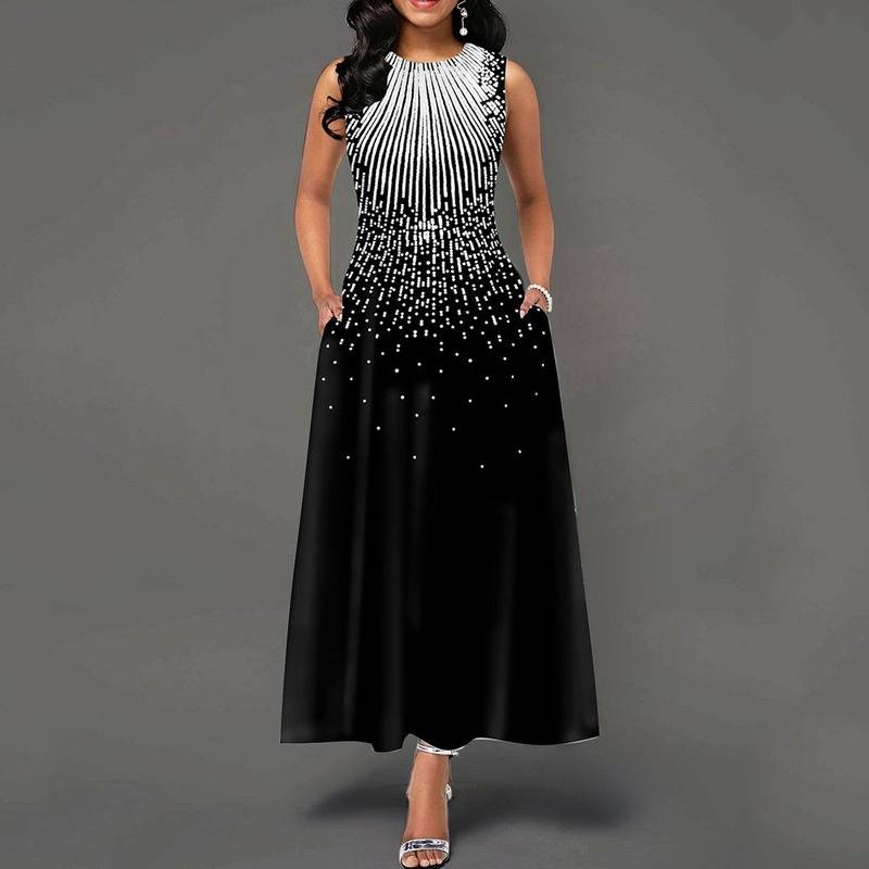 Элегантное винтажное платье с принтом А-силуэта и карманом, белое Макси-Платье, женское платье без рукавов, контрастный цвет, ТРАПЕЦИЕВИДНОЕ Макси-платье, 2019US $29,80 /