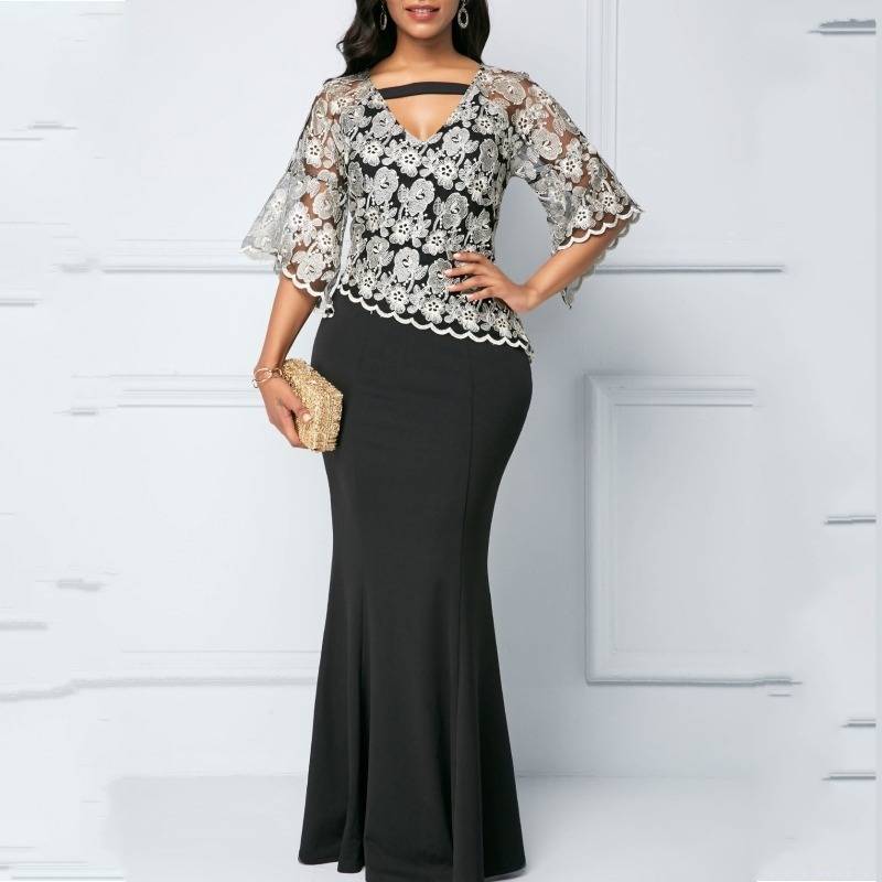 5XL 4XL, Африканское платье для женщин, 2020, повседневное, размера плюс, тонкое, лоскутное, кружевное, макси платье, элегантное, сексуальное, длинное платье, одежда для АфрикиUS $31,80 /