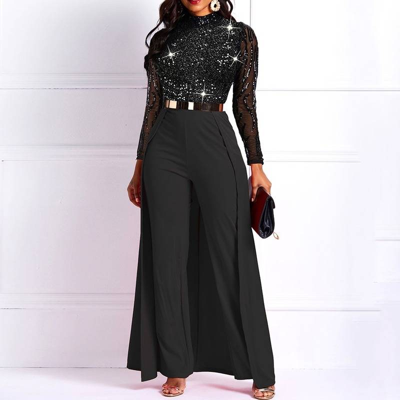 Черный длинный рукав размера плюс с высокой талией прямой простой комбинезон женский элегантный формальный вечерние облегающие Женские широкие комбинезоныUS $27,80 /