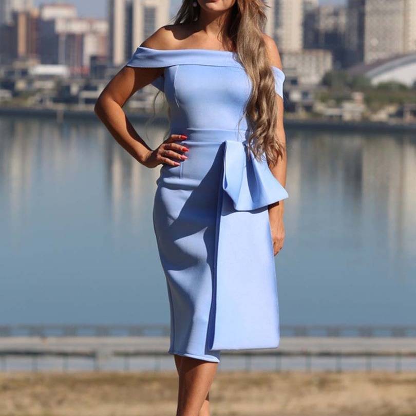 Женское платье с открытыми плечами, с вырезом лодочкой, без бретелек, синие платья-карандаш, вечернее сексуальное облегающее платье для женщин