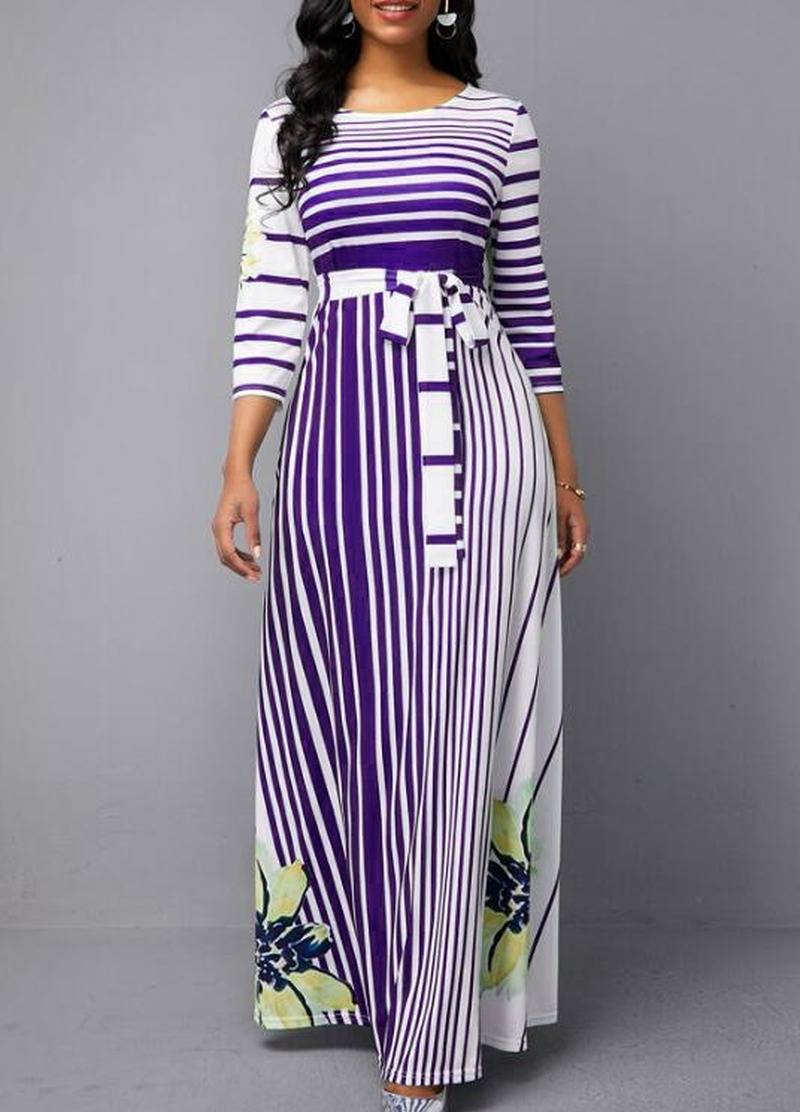 Повседневное Полосатое тонкое лоскутное летнее макси платье с коротким рукавом, простые эластичные платья без поясаUS $17,80 /