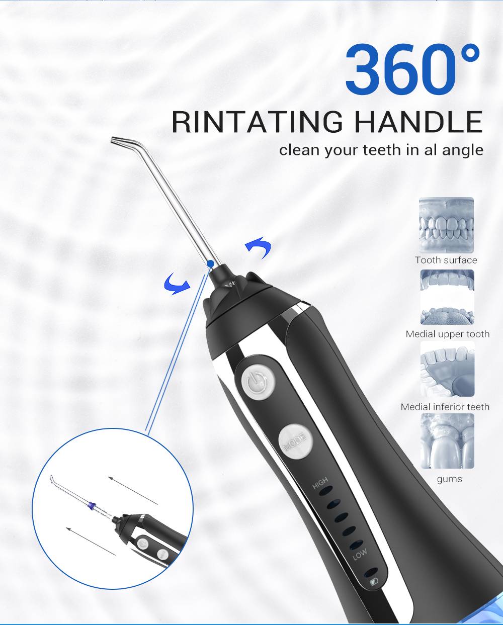 Ирригатор полости рта портативный с usb-зарядкой, 300 мл, 5 режимов