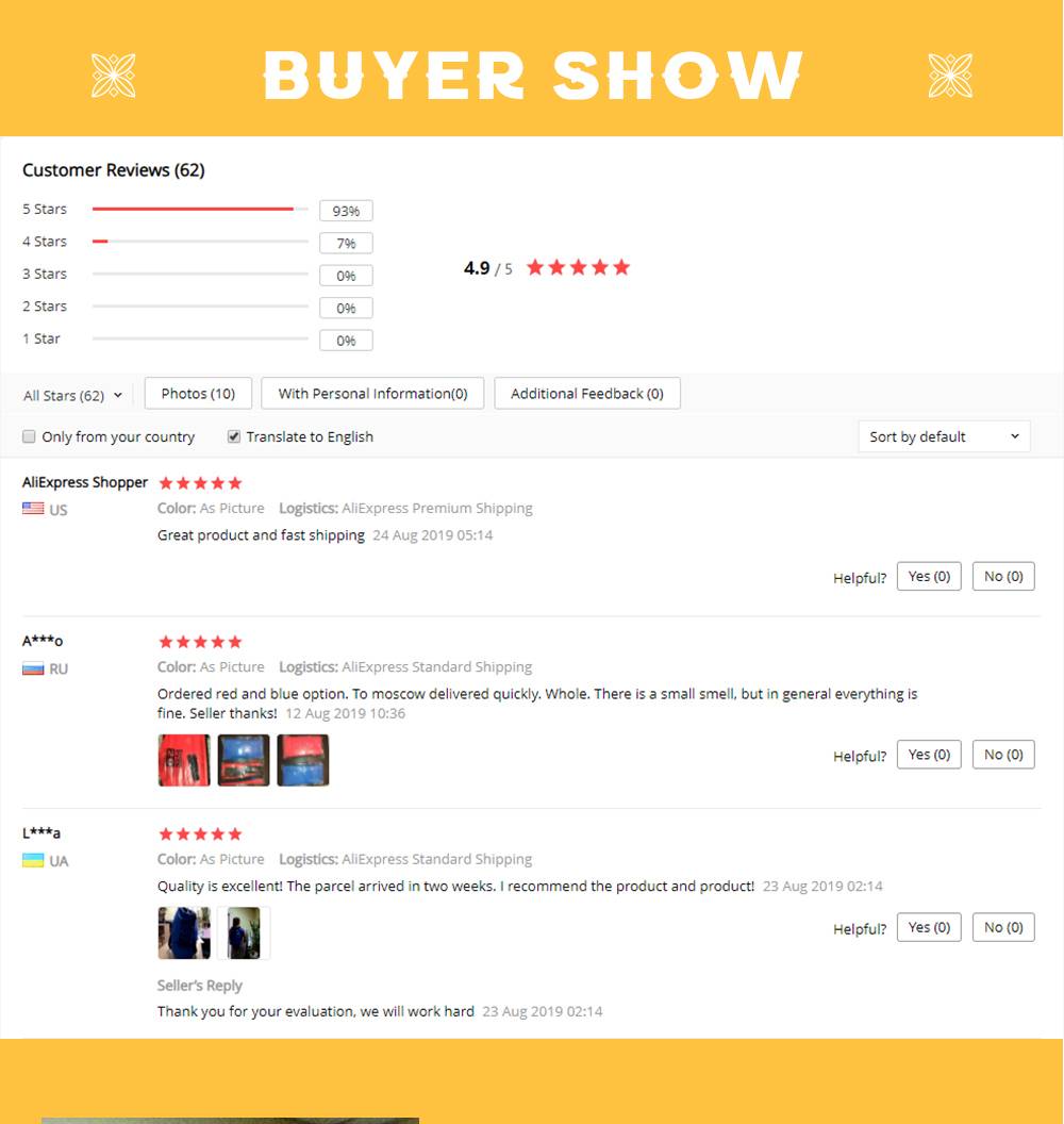 [2019-12-12 21:58:48]Анастасия: Покупала такую блузку через вас.Вторая блузка была заказана на Aliexpress.Ходила в ней на пляж(так как по городу немного неловко).Aliexpress доставка упаковала ее качественно и пришло все так как было на картинке начиная от цвета заканчивая размером.В жизни оказалось что она состоит ...Читать полностью...