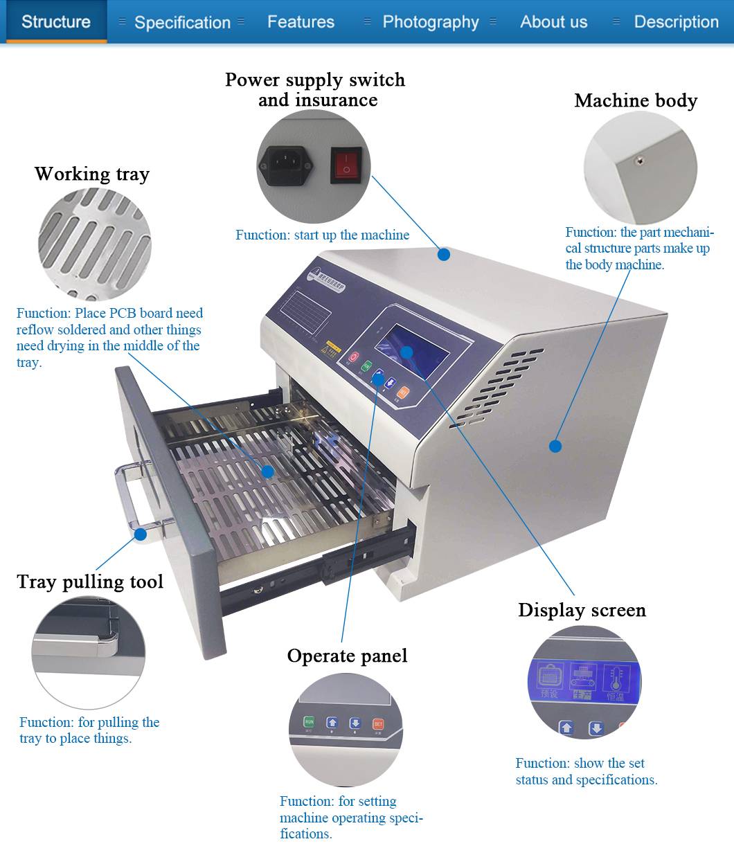 (1) большая инфракрасная зона пайки Панель ящика площадь: 350*300 мм; Это значительно увеличивает диапазон использования этой машины и делает ее экономичной инвестицией. (2) Специальный нагрев и выравнивание температуры со всеми дизайнами Использует до 2400 Вт энергоэффективного инфракрасного нагрева и циркуляции воздуха для повторного потока припоя. (3) Эргономичный дизайн, практичный и простой в эксплуатации Хорошее качество сборки, но в то же время легкий вес и небольшой след позволяет ZB2015HL легко позиционировать транспортировку или хранение. (4) Большое количество доступных функций ZB3530HL Может припаять большинство мелких частей печатных плат с глазками босса или с двойным лицом, например, чипы, SOP, PLCC, QFP, BGA и т. д. Это идеальное решение для переделки от одиночных пробежек до производства небольших партий по требованию.