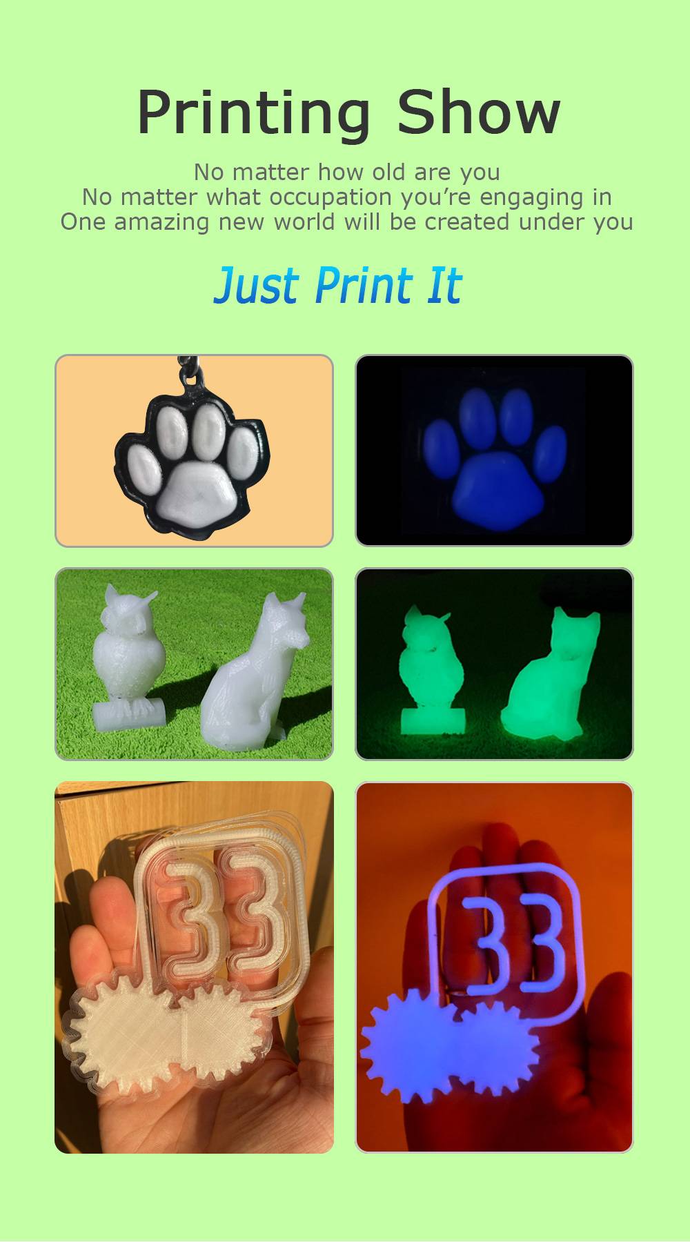 Светящиеся в темноте нити-это один из видов изменения цвета нити, смешением некоторые светятся в темноте меняют цвет в зависимости от порошок внутри PLA.
