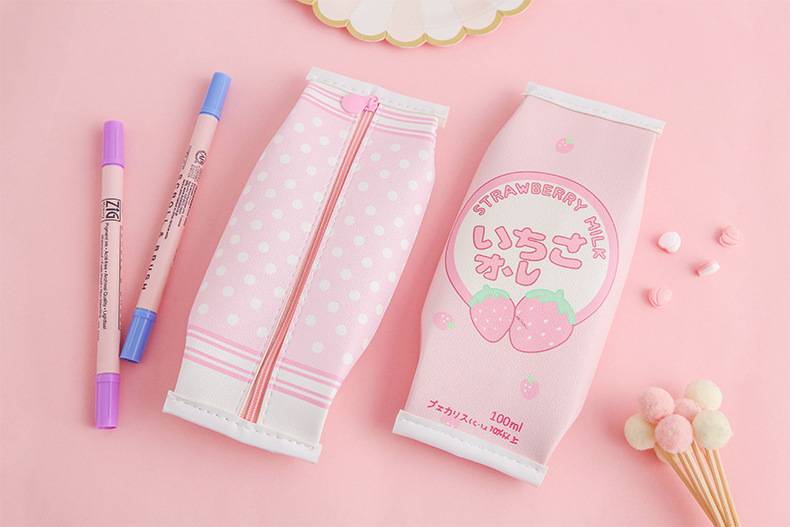 1 шт., Большой Вместительный чехол-карандаш из искусственной кожи Kawaii с клубничным молоком для девочек, чехол-карандаш, сумка, школьные канцелярские принадлежности, детский подарок на день рождения
