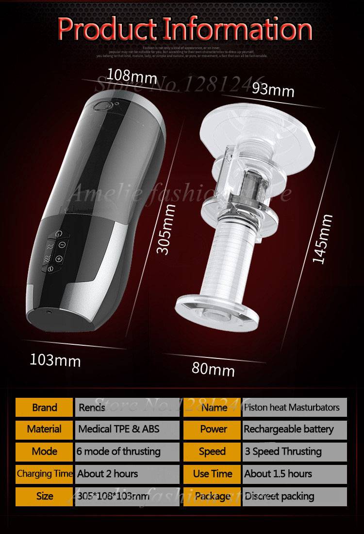 Материал: TPE , ABS Размер: 305x108 x 103мм/12 ''x 4,21'' x 4,02'' Мощность: Зарядка от разъема Частота: 6 видов телескопических режимов Телескопическая скорость: 3 вида Питание: перезаряжаемый переменного тока Характеристики: интеллектуальное отопление, автоматическая телескопическая Время зарядки: около 2 часов Применение Время работы: около 2,5 часов
