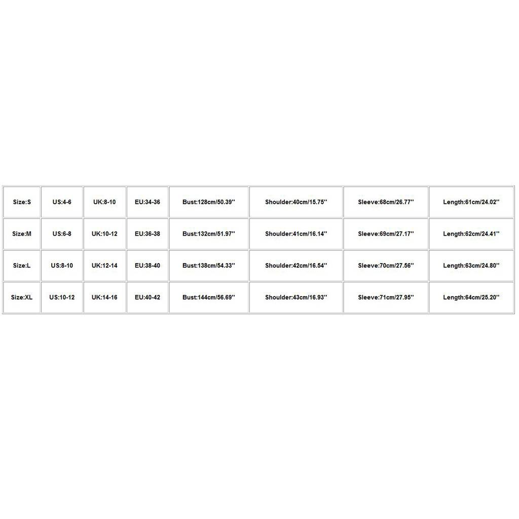 | Размер: XL | США: 10-12 | Великобритания: 14-16 | ЕС: 40-42 | Обхват груди: 144 см/56,69 дюйма | Ширина плеч: 43 см/16,93 дюйма | Рукав: 71 см/27,95 дюйма | Длина: 64 см/25,20'' |