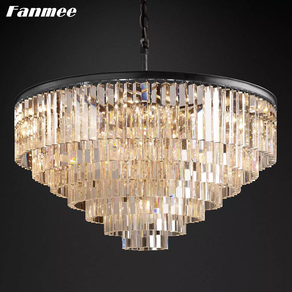 1920s Odeon круглая люстра Призма Хрустальная цепочка люстра лампа светодиодный Современный домашний декор Многоуровневая кристальная Подвеска светильник приспособление