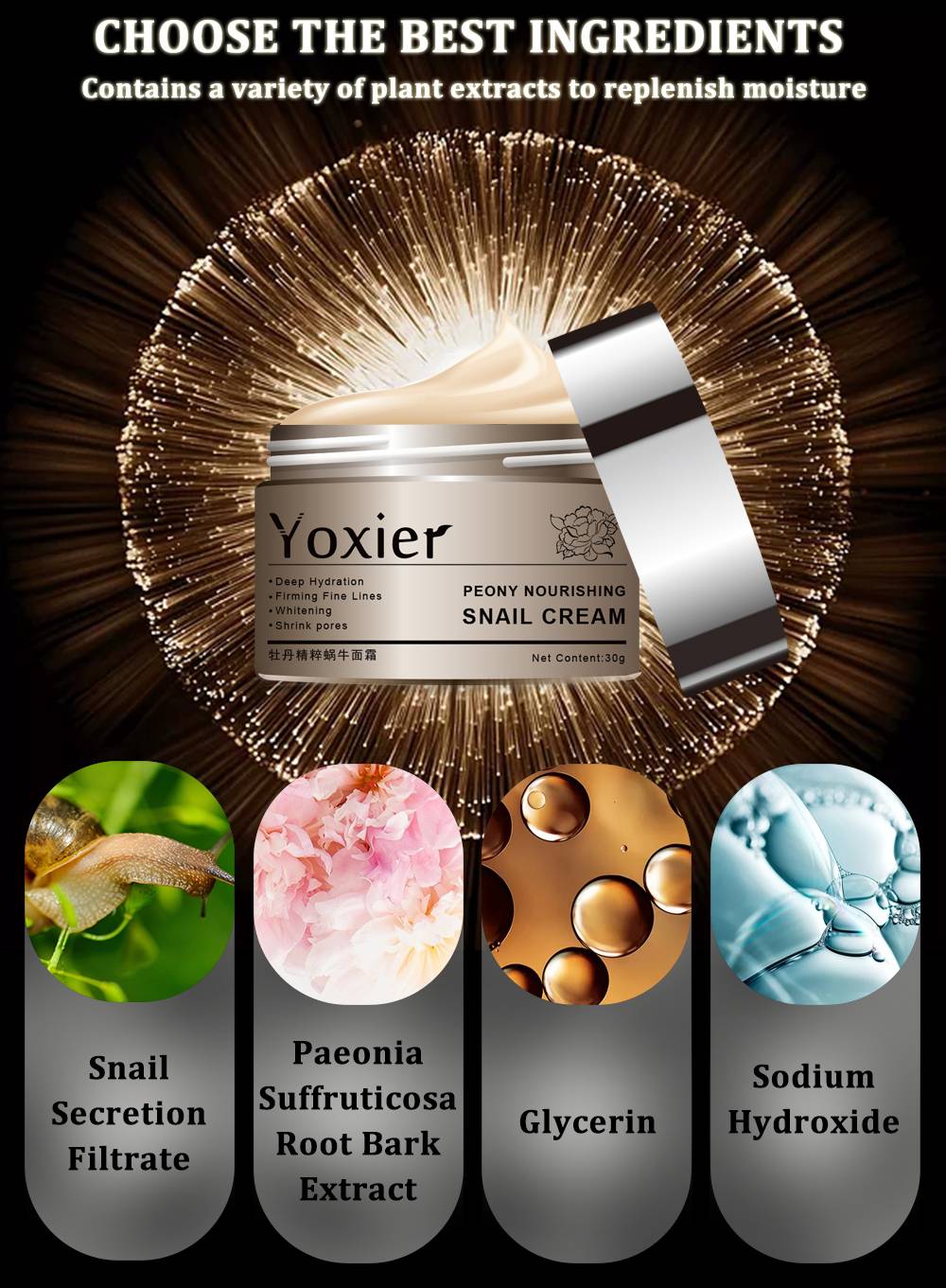 Функция: содержит экстракт растений, фильтрат секреции улитки и т. Д. Текстура освежает и деликатна, увлажняет кожу, повышает эластичность области вокруг глаз, увлажняет и разглаживает кожу вокруг глаз.