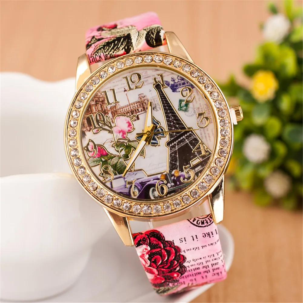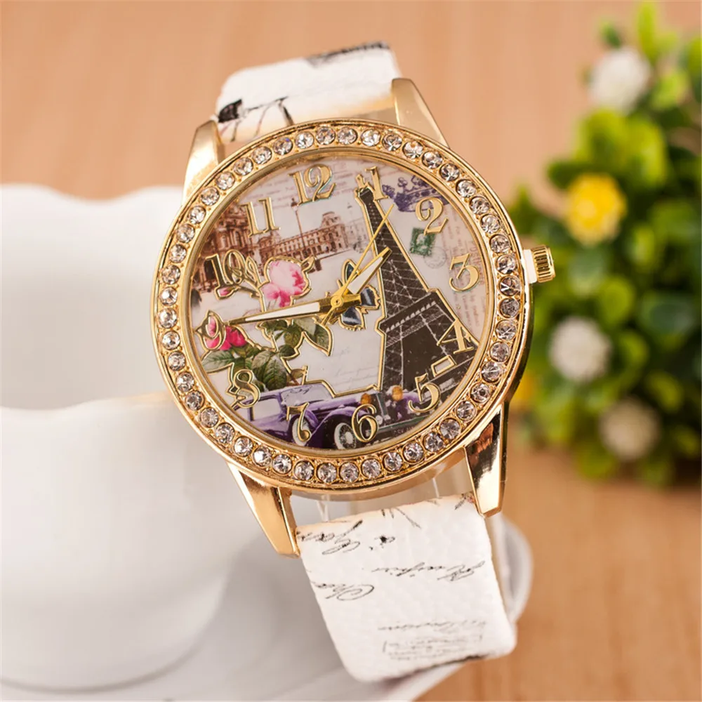 Модные металлические женские кварцевые часы с браслетом, креативные романтичные часы под платье с Эйфелевой башней, женские часы