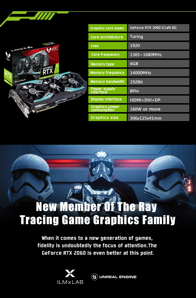 MAXSUN rtx 2060 iCraft 6G графическая карта 192bit GDDR6 Turing TU106 1920 единиц 1365 МГц 14000 МГц HDMI + DP + DVI видеокарта