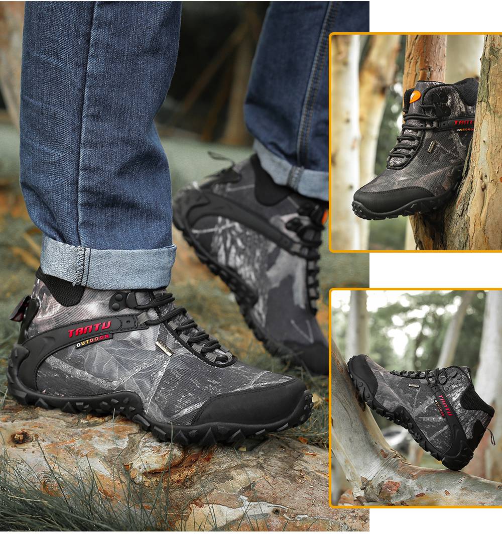 1. Верхний материал водонепроницаемый 2. Профессиональная походная обувь с кружевом 3. Цельный язычок для обуви 4. Нескользящая резиновая подошва 5. Удобная подкладка