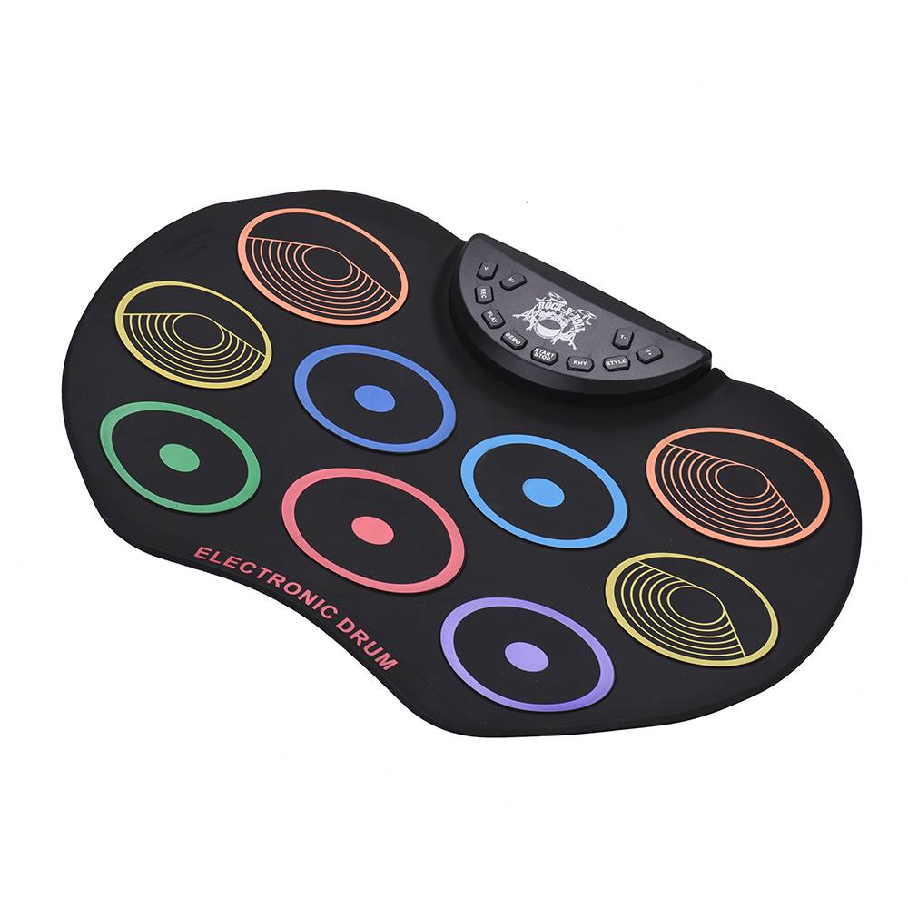With 9 colorful drum pads, including 3 * Tom drum, 1 * snare drum, 1 * bass drum, 3 * cymbal, 1 * Hi-hat, providing you with excellent drum sounds; supports connecting foot pedal to make you playing more flexible.