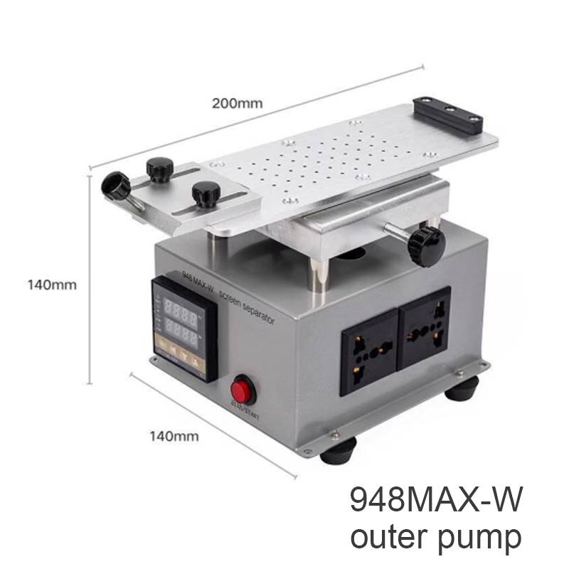 1. 948Max-W: необходимо подключить с внешним вакуумным насосом Характеристики: Rotable hot plate, fit fot изогнутый край экрана и плоский ЖК-экран