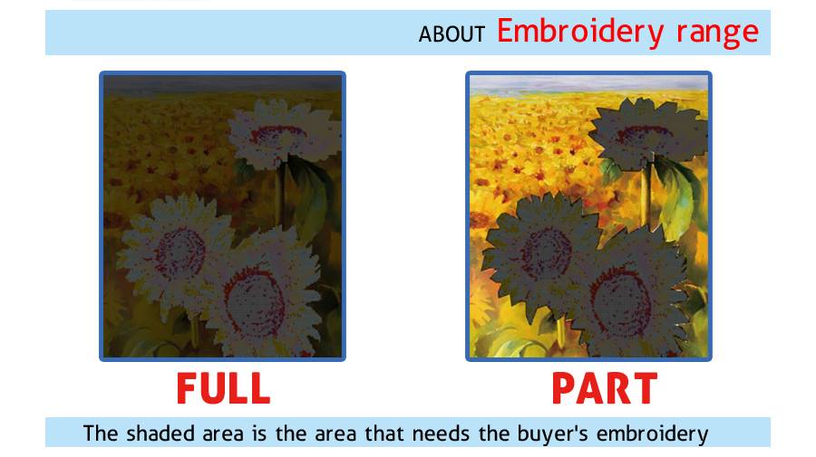 Наша полная вышивка крестиком-это использование продвинутой водорастворимой печати, которую вы вышили, вышитая ткань в теплой воде может легко смывать с печати. Но частичная вышивка использует технологию 5D печати, более реалистичный цвет, печать не может быть смыта.