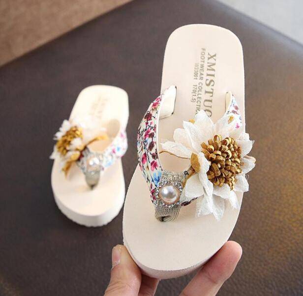 Новые Вьетнамки; Детская обувь; Тапочки с цветами и жемчужинами; Семейные Нескользящие мягкие домашние тапочки для маленьких девочек; Пляжные сандалии; s508