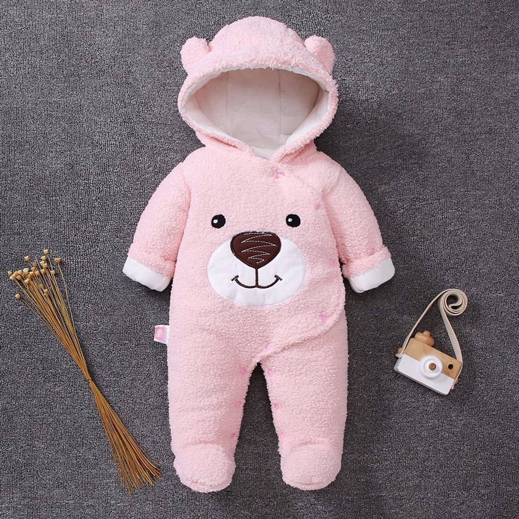 Зимний плотный Снежный комбинезон на молнии с изображением медведя для маленьких мальчиков и девочек, пальто с капюшоном, комбинезон