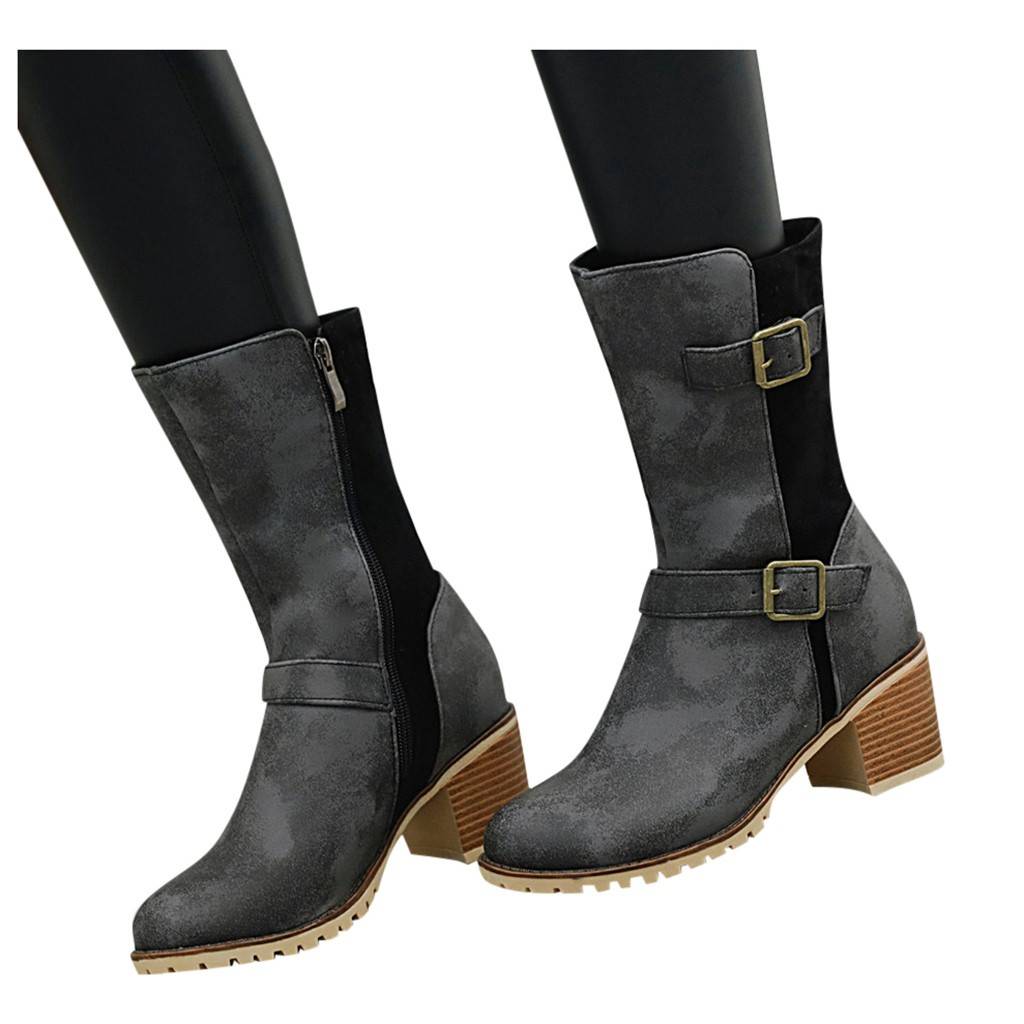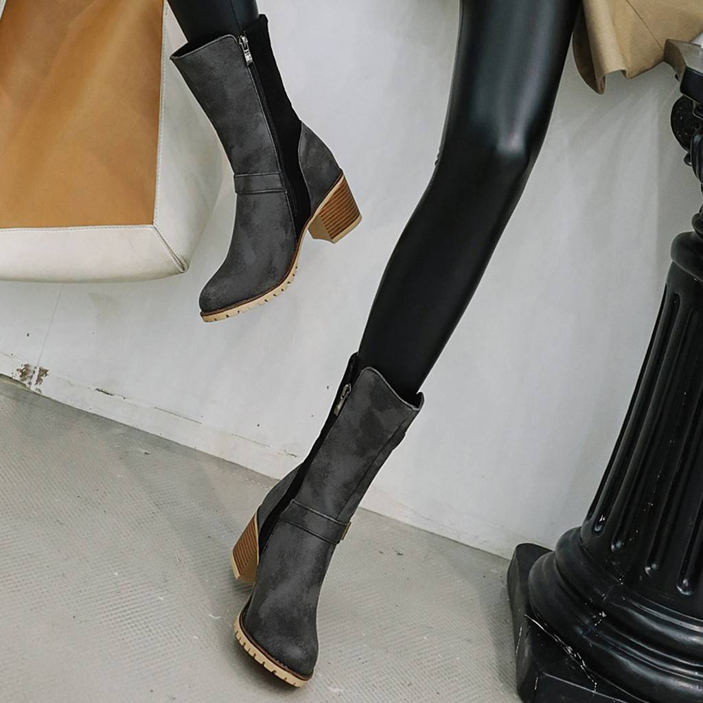 Женские ботильоны на квадратном каблуке без шнуровки; повседневные ботинки-трубы средней высоты
