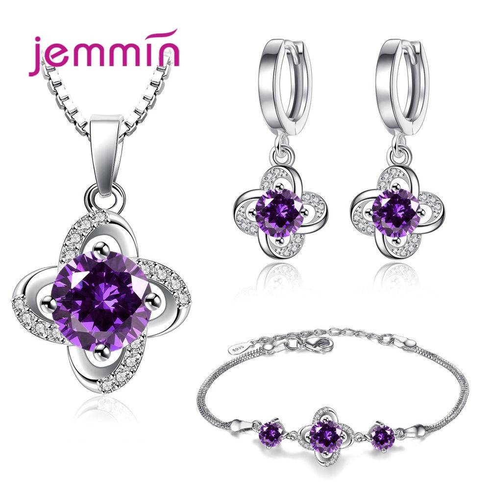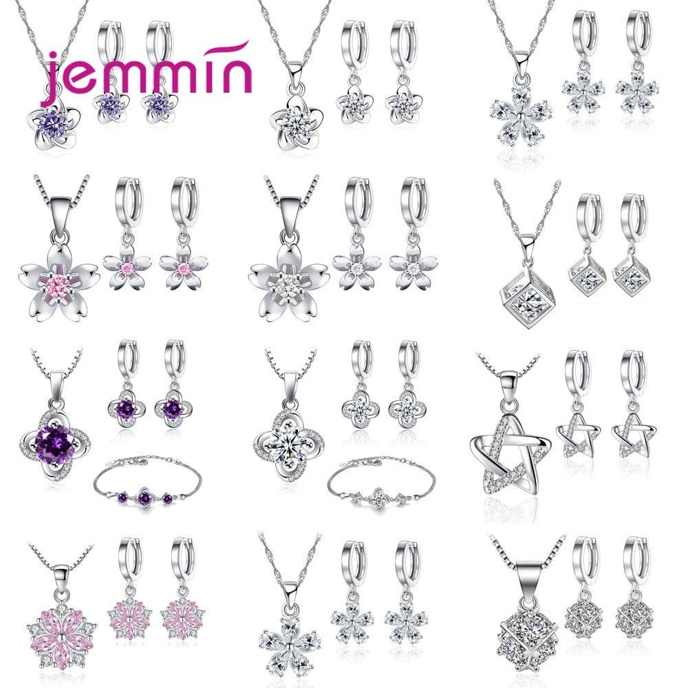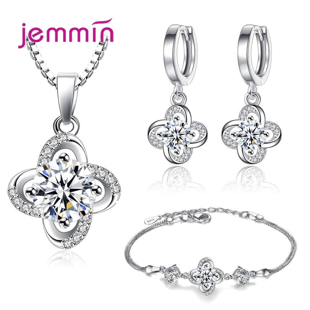 Женские наборы свадебных ювелирных изделий из стерлингового серебра 925 пробы с австрийским кристаллом AAA и цирконием ожерелье кулон/серьги/цепочка/браслет новая мода