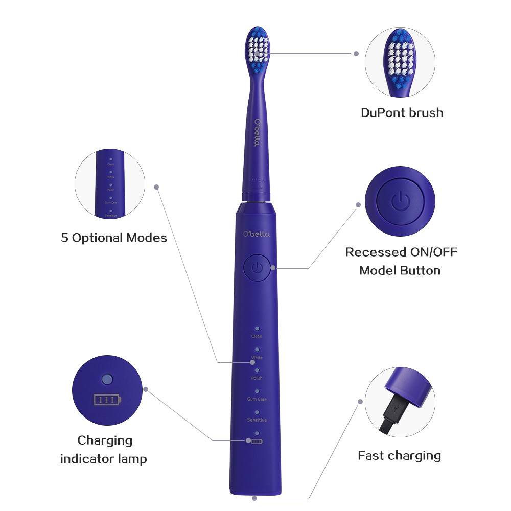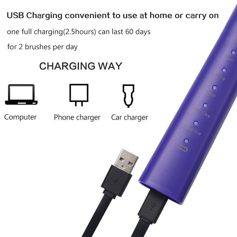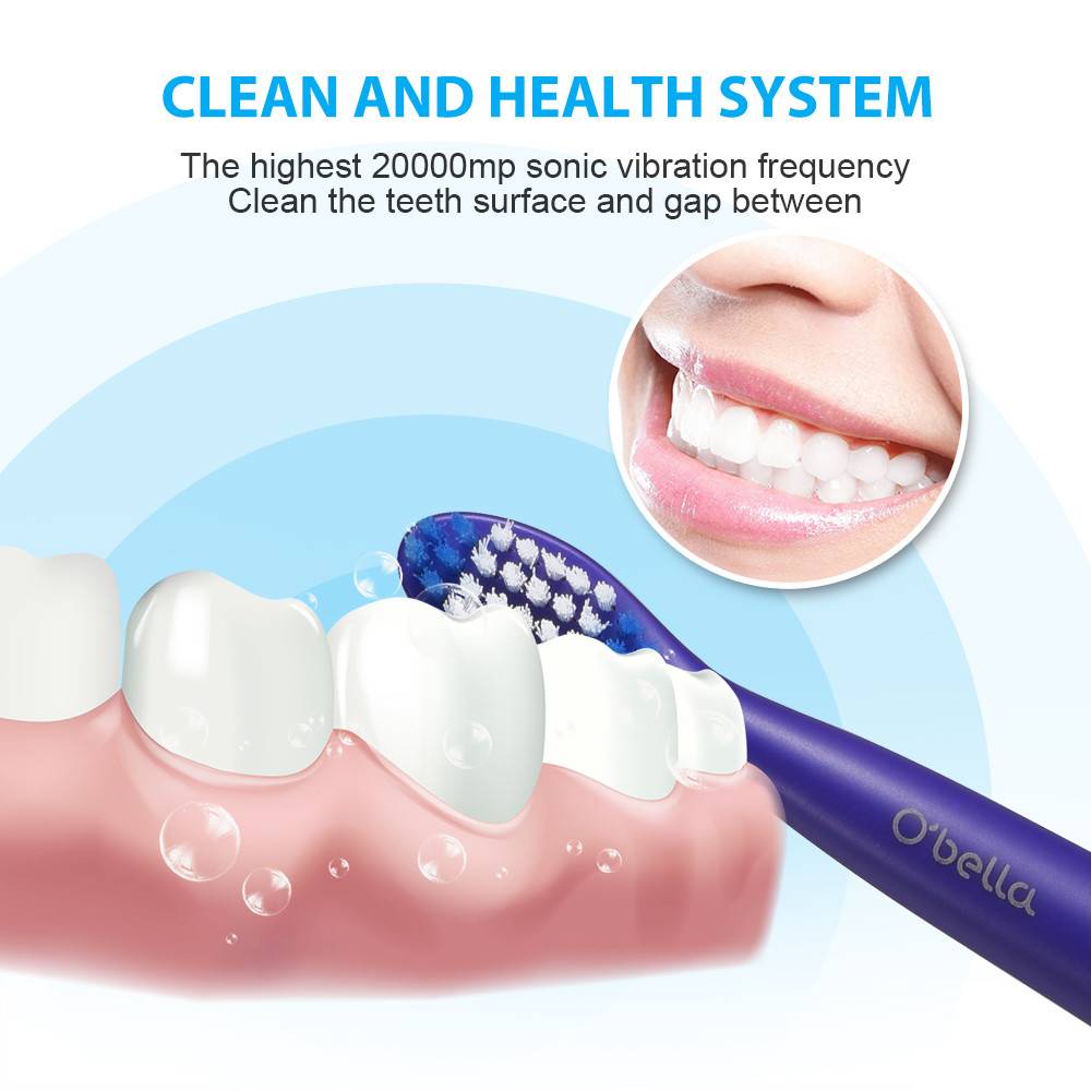 Матовая отделка для приятного ощущения в руке. Электрическая ультразвуковая зубная щетка с водонепроницаемостью IPX7, вы можете использовать во время купания и душа. Одобрено FDA/CE/RoHS. SONIC зубная щётка технологии