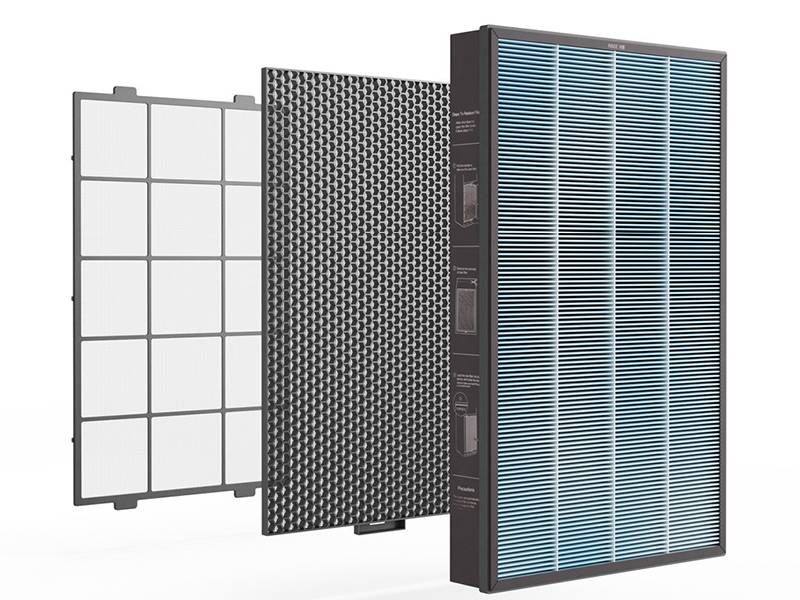 Новая двухсторонняя система давления, катушка спроектирована с левой и правой сторон, основной фильтр был изменен в автономную конструкцию, легко снимается и очищается. Столбчатый фильтр с активированным углем, который представляет собой мощную фильтрующую систему MAX, имеет срок службы 6-12 месяцев и эффективно фильтрует PM2.5, формальдегид, пыльцу, пыль, дым и другие вредные вещества.
