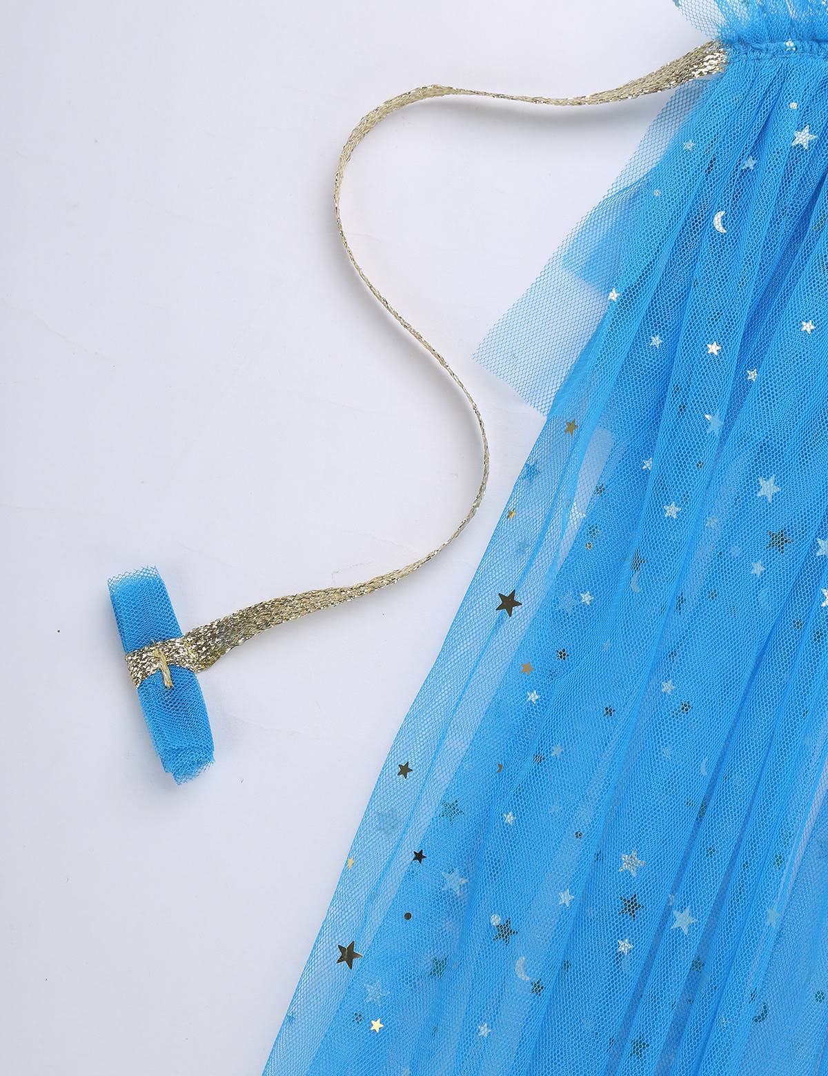 Все украшено маленькими сверкающими звездами и лунами, очень ослепительно, делает ваших маленьких девочек выделяться из ворса.
