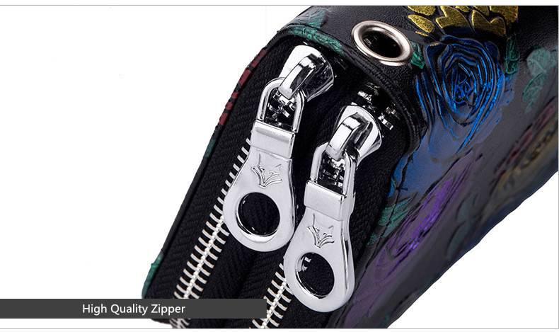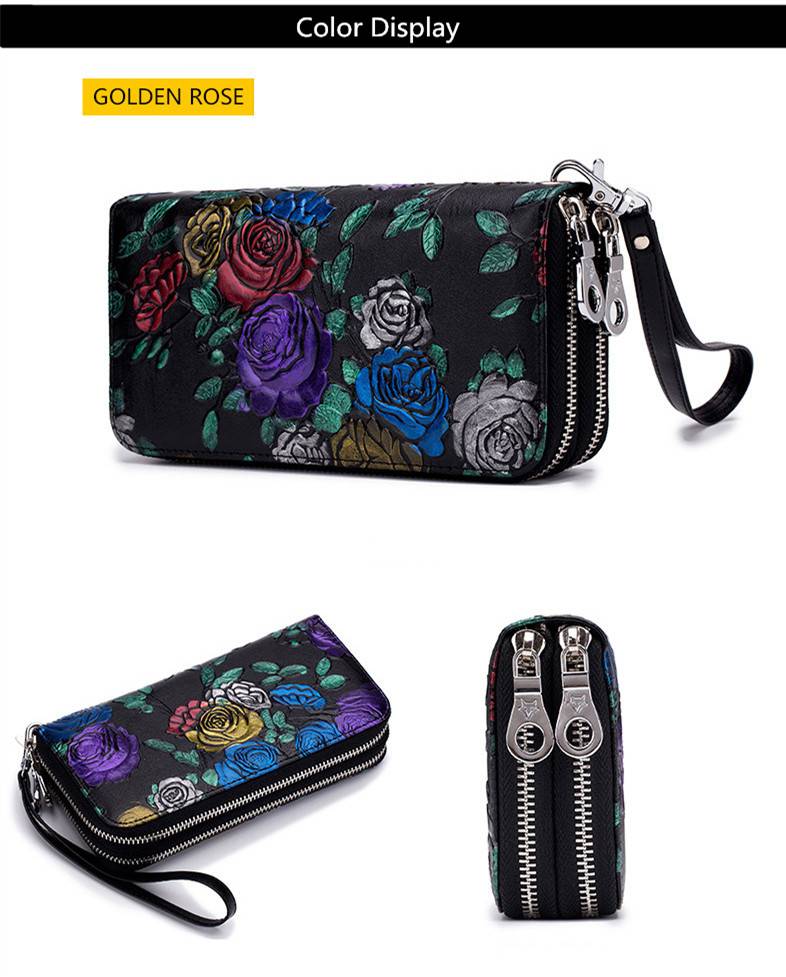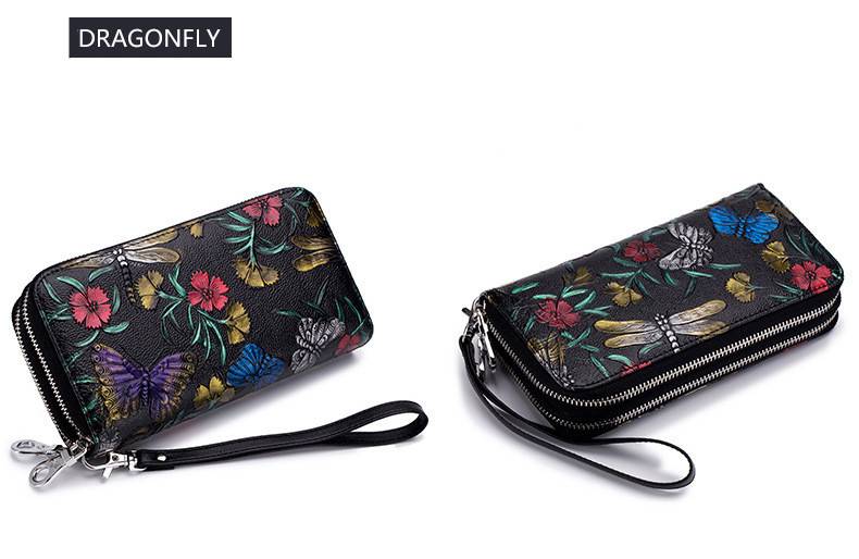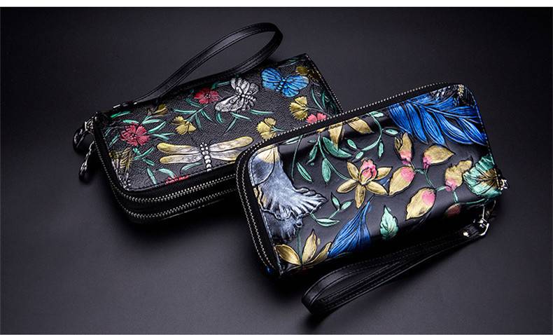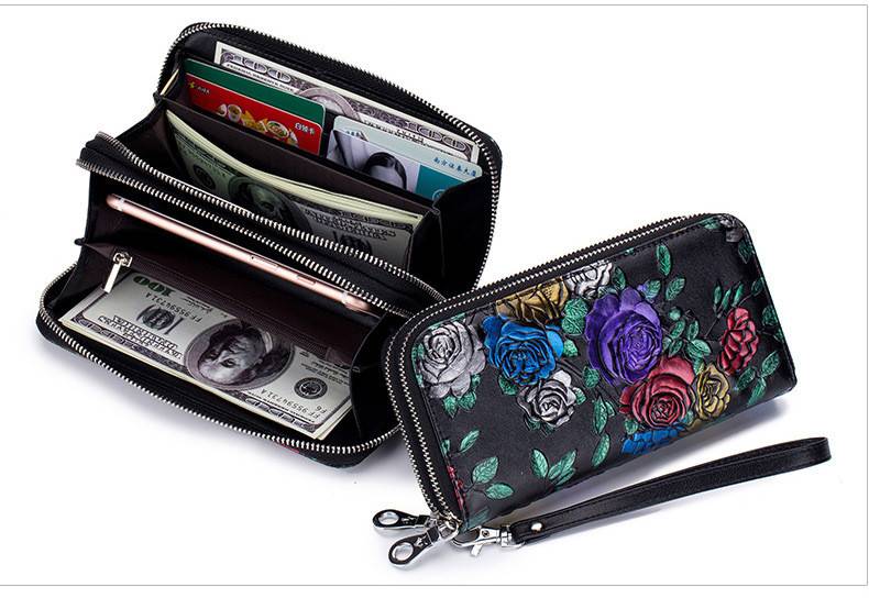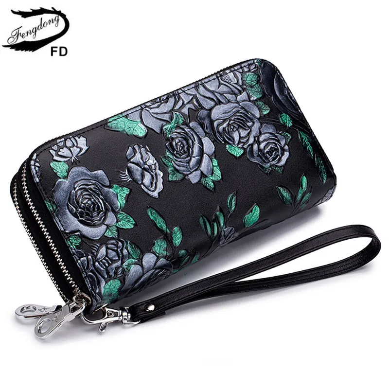 Fengdong женский кожаный кошелек, Женский Длинный кошелек для телефона, Женский винтажный кошелек для денег, подарок, китайский стиль, цветочный кошелек для кредитных карт