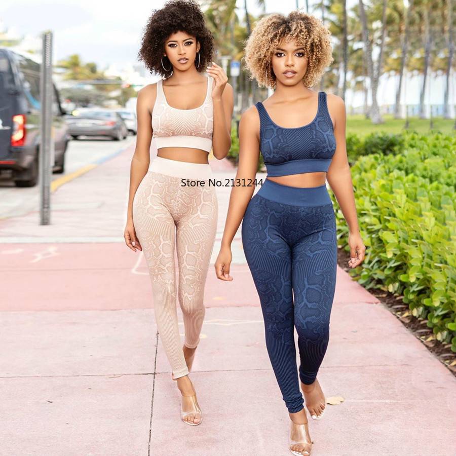 Женский спортивный костюм с принтом змеи, спортивный костюм из двух частей, эластичный Топ на бретелях с подкладом, леггинсы с высокой талией, повседневная спортивная одежда, 2020US $16,62