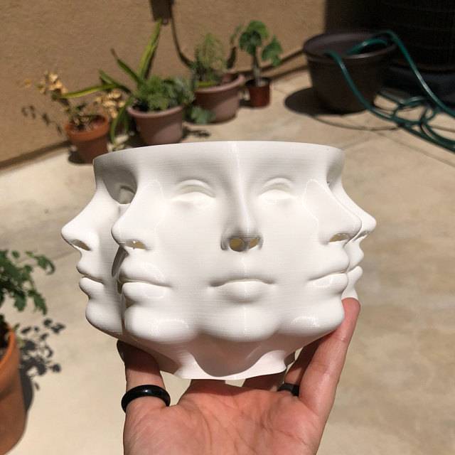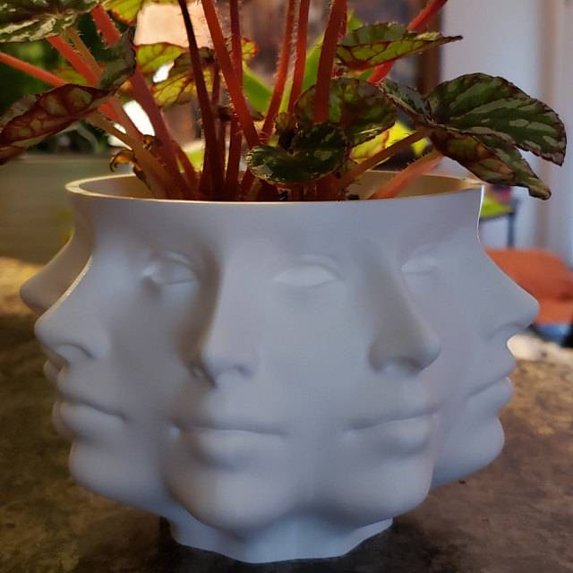 Этот Плантатор далеко и далеко мой самый популярный товар, который я создала, нарезав и нарезав модель женского лица. Он примерно 4 дюйма в высоту, 6 дюймов в диаметре, от носа до носа, полностью полый, и имеет 1/2 "дренажное отверстие в нижней части. Он может держать до среднего размера суккулентов или других растений в горшке, но он отлично подходит как миска для хранения вещей тоже!